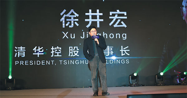 Xu Jinghong, president of Tsinghua Holdings, delievers a speech at the New Economy Developed Forum, a sub-forum of the 2017 Zhongguancun Forum. Provided to China Daily |