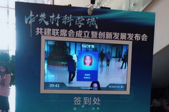 Face ++ applies its facial recognition sign-in system at the launching ceremony. [Photo/people.com.cn] |