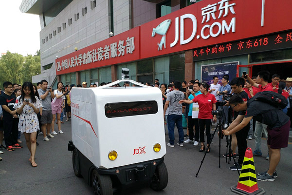 It used drones to deliver packages in Xi'an, capital of Northwest China's Shaanxi province, during its June 18 shopping festival last year, and carried out smart robot deliveries at several universities, such as Renmin University of China, Tsinghua University and Zhejiang University.