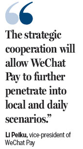 "The strategic cooperation will allow WeChat Pay to further penetrate into local and daily scenarios and provide Chinese tourists with more in-depth services," said Li Peiku, vicepresident of WeChat Pay.
