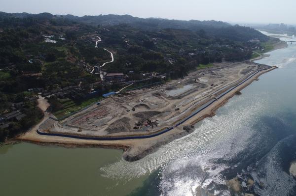 The archaeological site in a section of the river that runs through Jiangkou township in Pengshan district, Meishan, Sichuan province. [Photo provided to China Daily] |
