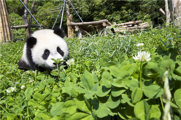 One of the four panda cubs to be named at the China Conservation and Research Center for Giant Panda Dujiangyan Base. / Photo provided to China Daily |