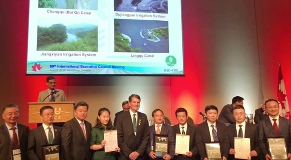 The Dujiangyan irrigation system, along with other three ancient irrigation sites in China, was recognized as Heritage Irrigation Structure by the International Commission on Irrigation and Drainage (ICID) in Saskatoon, Canada on Aug 13.