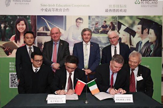 The University of Electronic Science and Technology (UESTC) in Chengdu, China signed an agreement with Dublin Institute of Technology (DIT) in Ireland to jointly establish a research institute on Oct 19, at the Irish Embassy in China.