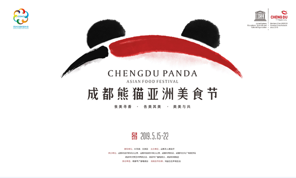 The official logo of the Chengdu Panda Asian Food Festival depicts the image of the giant panda in Chengdu and a pepper, which is the soul of Sichuan cuisine. [Photo provided to China Daily] |