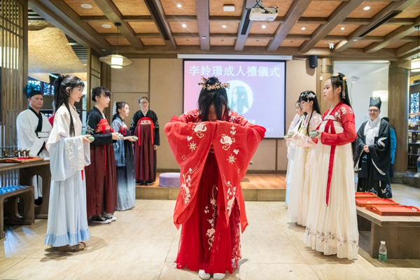 "The coming of age ceremony makes me more aware of the care and love of my parents and relatives. It gives me a deeper understanding of the charm of traditional Chinese etiquette and culture," said Mujiu, adding that the ceremony is of special meaning to her as she is going to study in the United States next month.