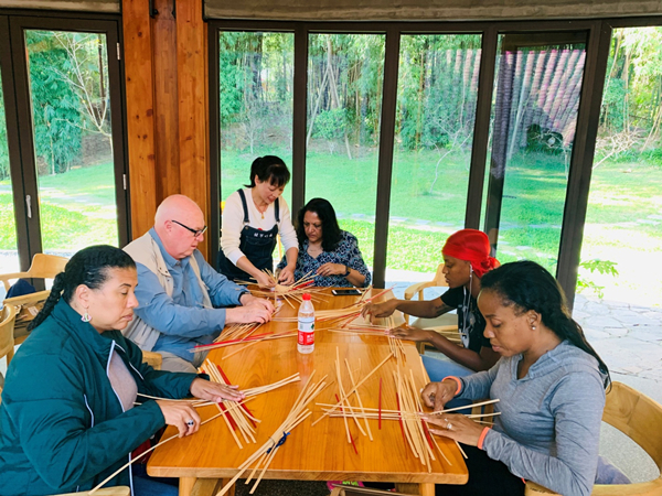 Travel consultants, travel writers, and journalists from countries including the United States, Canada, and the United Kingdom experience bamboo weaving in Chengdu. [Photo provided to China Daily] |