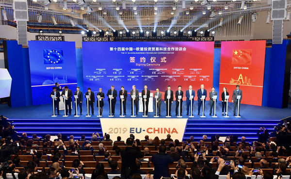 Thirteen China-EU cooperation projects were signed at the opening ceremony of the 14th EU-China Business & Technology Cooperation Fair on Nov 11 in Chengdu, Sichuan province. [Photo provided to China Daily] |