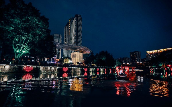 A nighttime boat trip on the Jinjiang River is now popular with tourists to Chengdu. [Photo provided to China Daily] |