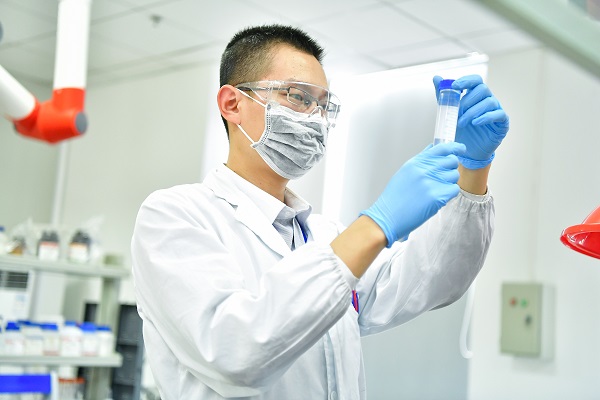 A technician performs an experiment at a lab operated by HitGen, a Chengdu-based pharmaceutical company. [Photo provided to China Daily] |