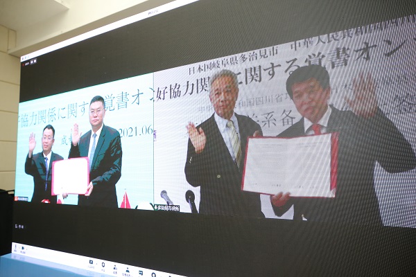 Qionglai city in Chengdu, capital of Southwest China's Sichuan province, signed a memorandum of understanding (MOU) online with Tajimi, a city in the south of Gifu prefecture, Japan, to establish cooperative ties on June 22.