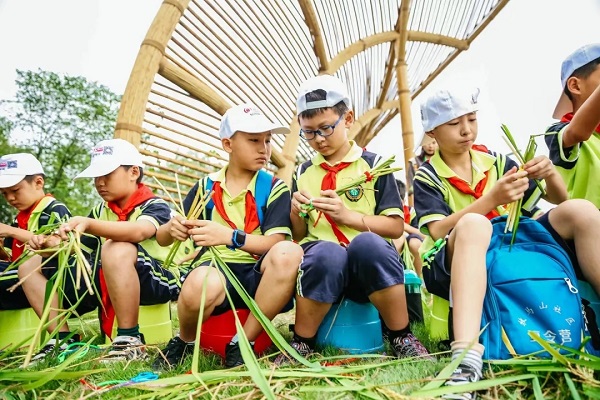 The students of Xinjin Huayuan Primary School experience scarecrow making at the China Tianfu Agricultural Expo Park in Xinjin district, Chengdu, Sichuan province, on Sept 23. [Photo provided to China Daily] |