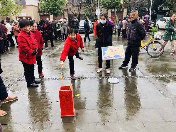 During the park-strolling activity, disabled people watched some singing and dancing performances by a disabled art team from Xinjin district and the cultural publicity teams of local communities. They also did bowling, golf, and pitch-pot with the help of volunteers.