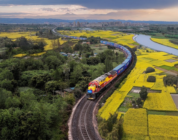 The trains setting out from the Chengdu International Railway Port link more than 100 cities, forming a land-sea freight distribution system that connects to Europe, Mongolia, Japan, South Korea and the Association of Southeast Asian Nations.