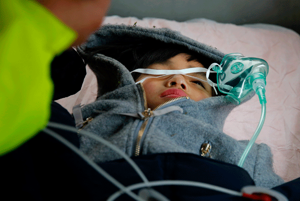 An ambulance rushes Chen Xinyi to a hospital after she and two other missing children were found on Feb 19, 2016 in Zhejiang province. [Photo by Shen Zhicheng / For China Daily] |