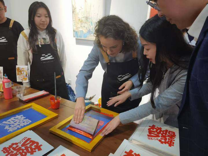 A student from Tambov State University tries rubbing Chinese characters at Nantong Normal College. [Photo/Nantong Daily]