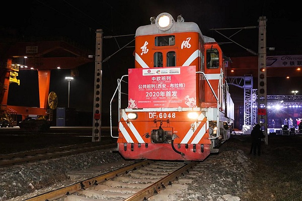 The China-Europe Chang'an freight train (Xi'an-Prague) departed from Xi'an International Trade and Logistics (ITL) Park on Jan 1, marking the departure of the first freight train in 2020.