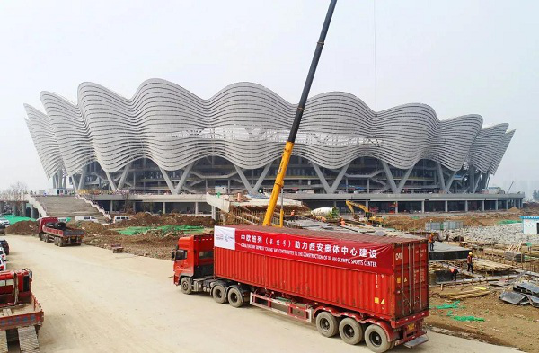 Special high-tech prefabricated rubber running tracks for the main stadium of the new Xi'an Olympic Sports Center were transported by the China-Europe Chang'an freight train from abroad and finally arrived at the construction site after customs clearance on March 30, according to local officials in Xi'an, capital of Northwest China's Shaanxi province.