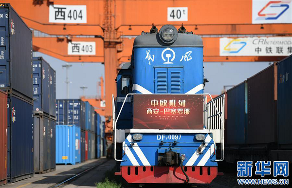 Loaded with 50 containers of solar panels, a China-Europe freight train departed from Xi'an Xinzhu Railway Station in Xi'an, capital of Northwest China's Shaanxi province on April 9, heading for Barcelona, the second largest city in Spain.