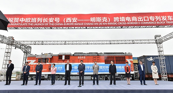 The China-Europe Chang'an cross-border e-commerce freight train (Xi'an-Minsk) departed from Xi'an Port in Xi'an International Trade and Logistics (ITL) Park on May 28, bound for Minsk, capital of Belarus.