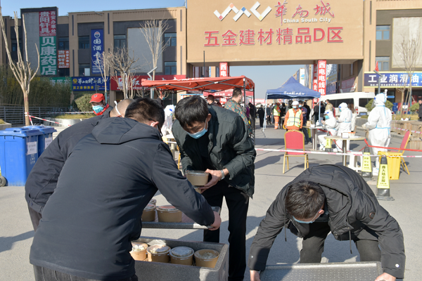 Xi'an Aiju Grain and Oil Industrial Group prepared dumplings for the personnel working at nucleic acid testing points in Xi'an International Trade and Logistics (ITL) Park on Dec 21. The snacks were sent to mark Winter Solstice, the 22nd solar term of the year.