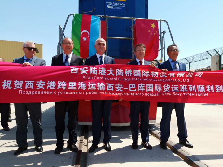 An international freight train originating from Xi'an arrived in Baku, capital of Azerbaijan, on July 6, marking the opening of the rail-sea multimodal transport route across the Caspian Sea to Baku.